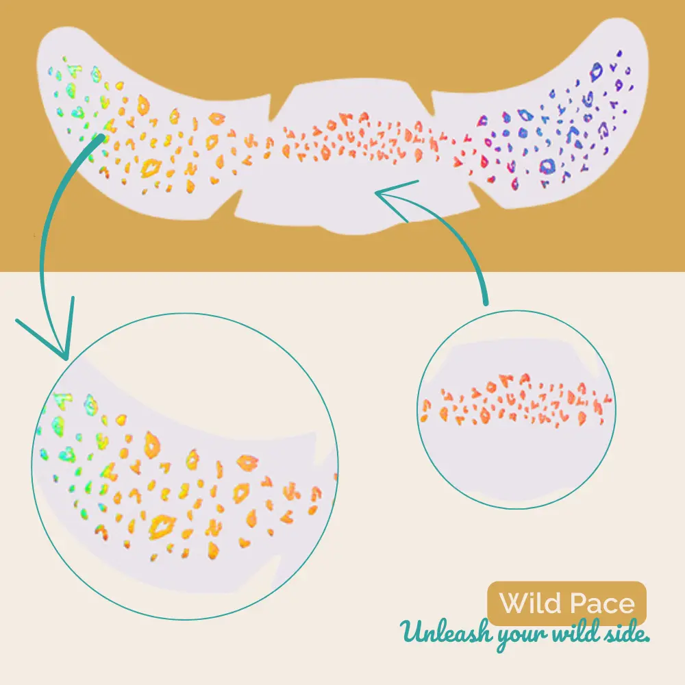 Freck Yeah Wild Pace so za tiste dni, ko se počutiš malo bolj divje. Leopardji holo vzorec v mavričnih barvah, ki se pod soncem preliva in drži korak s tabo – na progi, pod reflektorji ali na plesišču.